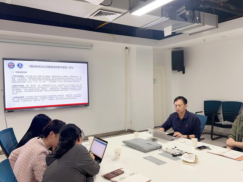 活动最后,喻平书记对本次专题学习进行总结。他充分肯定活动成效,认为此次学习既深化了师生党员对作风建设的认识,也为公司后续工作指明了方向。他勉励全体党员:要以此次学习为契机,把“转作风、减负担”的要求转化为实际行动,以更务实的态度、更饱满的热情投身创新创业教育,切实把学习成果转化为推动公司发展的动力。