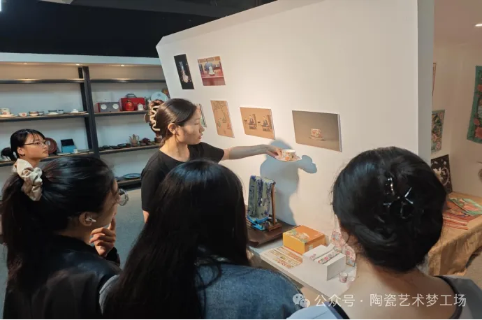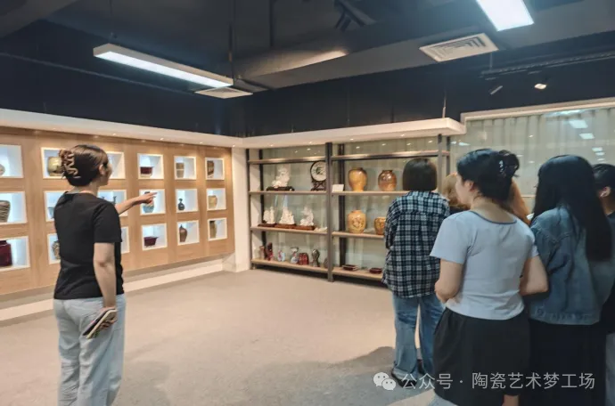 接着工作人员引领同学们来到创业展厅。其中,与艺术设计公司合作的毕业设计作品尤其吸引了大家的眼球,这些作品不仅展现了员工们的创新思维,也体现了他们对陶瓷艺术的深刻理解。每一件作品都是对传统与现代结合的探索,让员工们对陶瓷的可能性有了更广阔的想象。