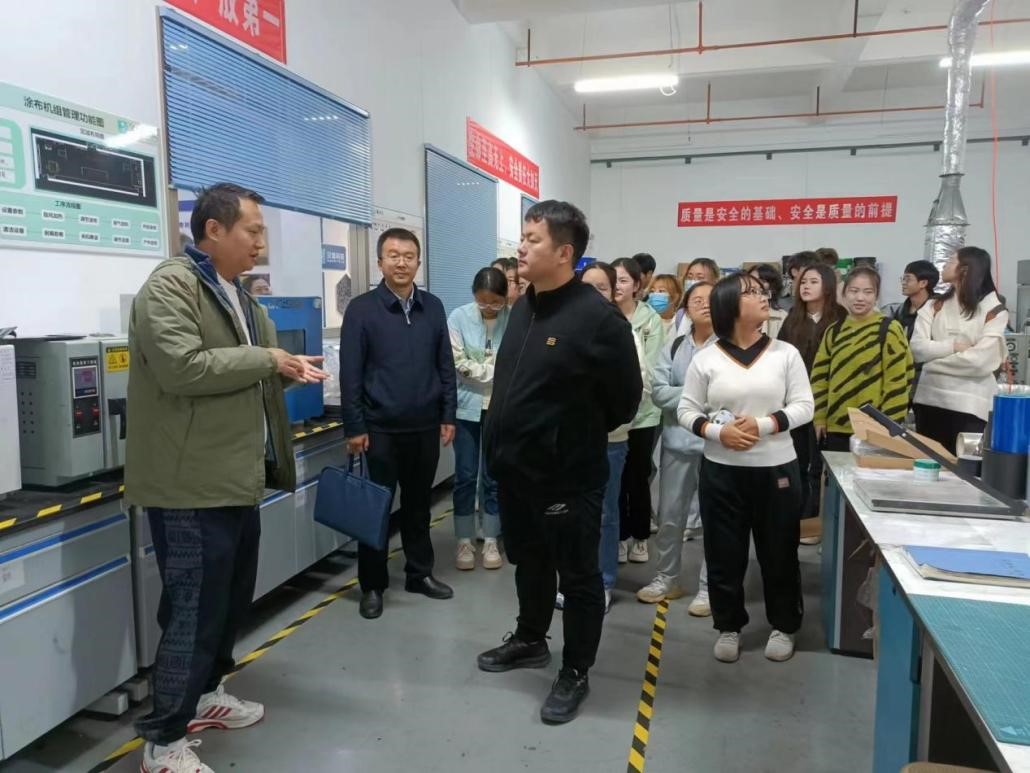 技术人员带领同学们走进汉烯科技的中试间,让同学们实地观摩石墨烯材料从氧化石墨烯,历经加入浆料、涂布、高温烘干等工艺,最后石墨化,形成纯碳、泡棉结构的宏观石墨烯膜产品制备过程。