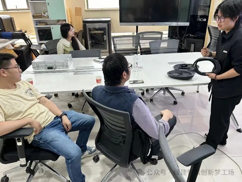 尹梦雅同学首先介绍了智慧城市与建筑梦工厂的基本情况,随后介绍了梦工厂中的各种专业设备以及员工手工制作的建筑模型,并展示了近年来智城梦工厂在项比赛中取得的成果以及由梦工厂成员曾与的各项活动。接着,调研团队详细询问了由该梦工厂成员创作的了基于MR(混合现实)的建筑解构项目,并通过MR设备的使用进行了实际项目的体验。
