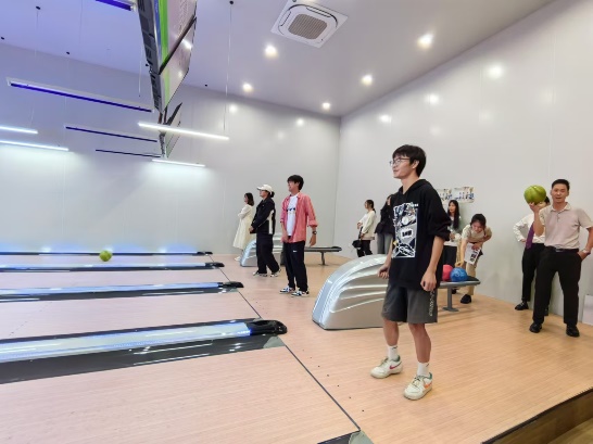 最后,同学们在讲解员的带领下来到了悠悠馆,体验保龄球和台球。同学们在高强度的参观后,通过有趣的保龄球和台球获得了身心的放松,亦感受到了盛隆企业以人为本的理念和企业员工在工作之余的休憩娱乐,对于盛隆电气有了更加真实的感受。