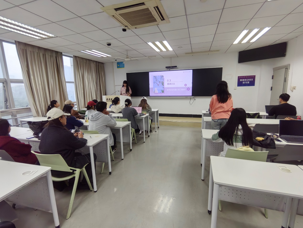 汇报结束后,班会围绕“管理者的理工精神”话题开展圆桌对话,班级同学结合自身在企业管理或项目实践中的真实经历,就如何践行理工精神进行了热烈讨论。通过分享和交流,对专业认同和职业方向有了更深刻的理解。