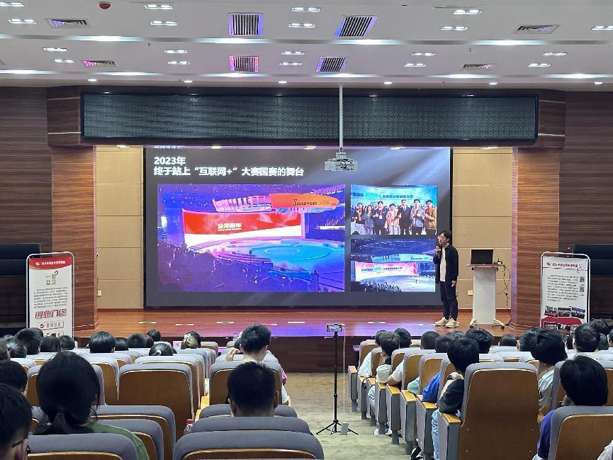 接下来,学长张书豪分享了自己保研北航的经验。他回顾了自己在大学期间的创业经历,并强调了创业对个人成长的重要性。同时,学长也对当下热词“内卷”做出了自己的解读,鼓励同学们“有效内卷”,提前做好个人规划。