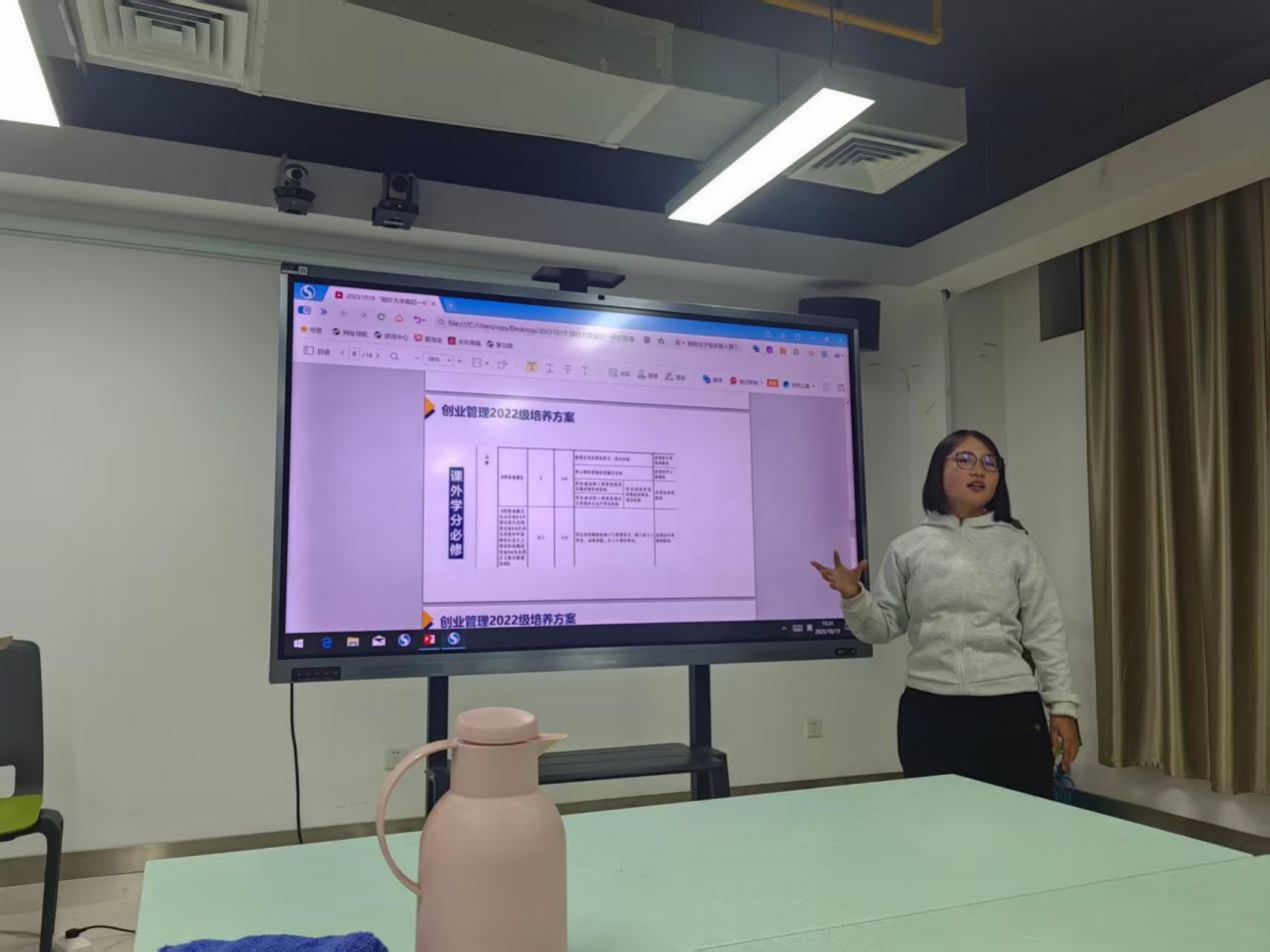 在补修选修课程说明环节,班长对照创业管理2022级培养方案,详细解读了最低毕业学分要求,明确公共基础、通识教育、专业教育等各类课程的必修与选修学分标准,重点提醒同学们核对课外学分完成情况,包括《劳动教育》《心理健康教育》等必修学分,以及思想政治与道德素养、科研创新、文艺体育等类别选修学分的获取路径,督促未修满学分的同学及时完成补修,确保符合毕业条件。