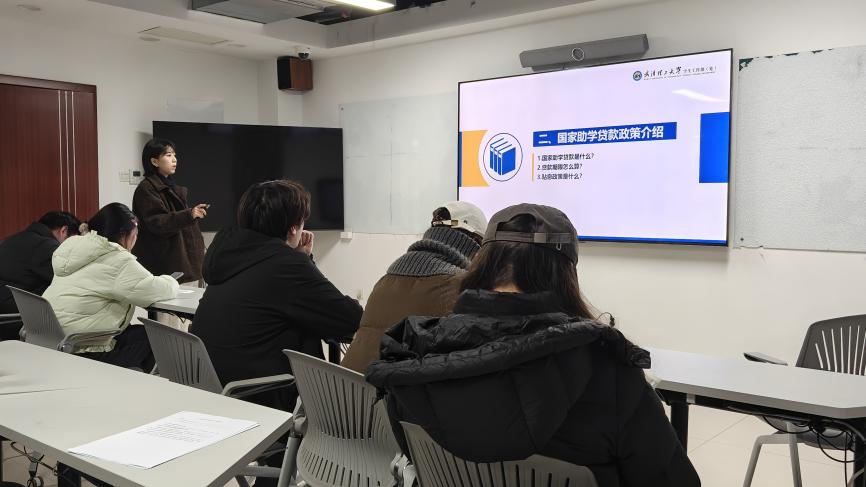会上,兼职辅导员姚烨首先开展国家助学贷款专题讲解。她结合最新政策要求,从国家助学贷款的申请条件、办理流程、资金发放、还款方式及利息计算等核心内容进行详细梳理,重点解读了毕业前还款确认、逾期还款影响等关键注意事项,提醒同学们重视助学贷款相关事宜,树立诚信还款意识,合理规划资金使用。